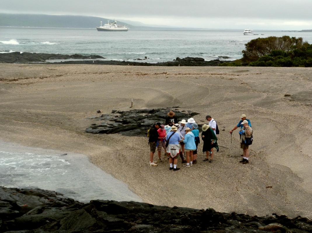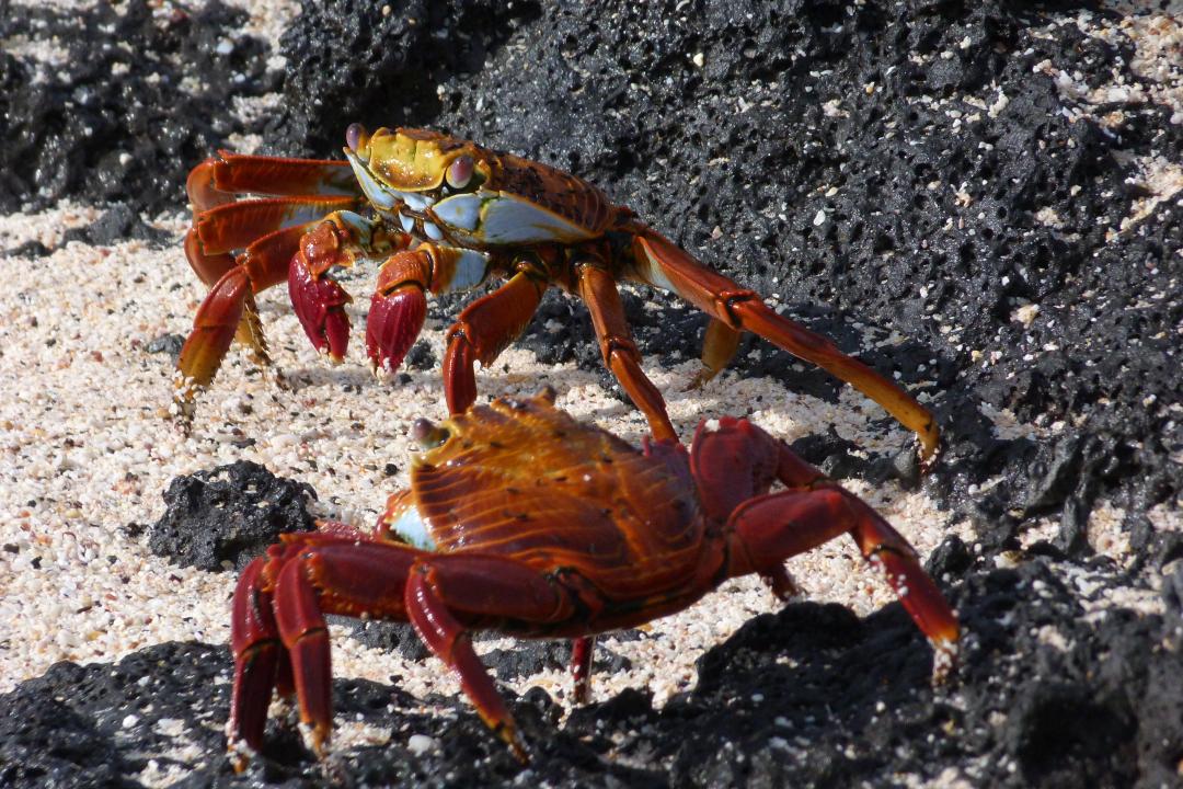 Sat. 11 Feb. 2012: Land at Baltra airport, embark National Geographic Endeavor. Hike along shore of Las Bachas on Santa Cruz (crabs, birds), followed by swim.