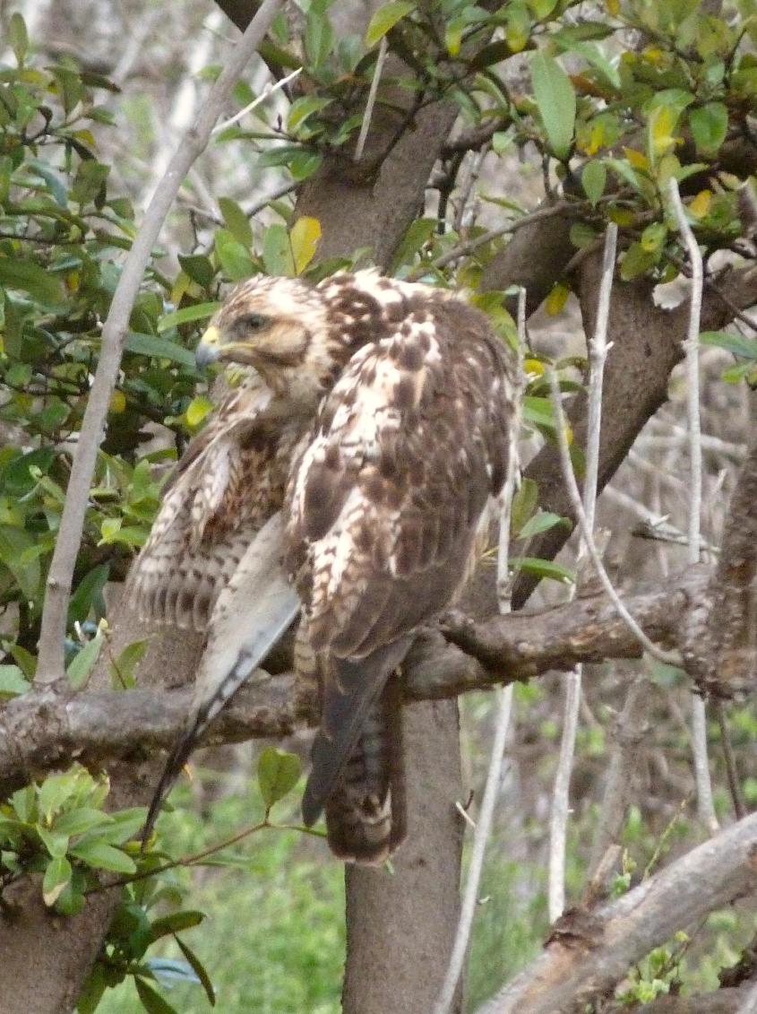 Sun. 12 Feb. 2012: Hike on North Seymour Island (frigate birds, etc.). Afternoon snorkeling at Rabida Island (swimming with sea lions, stings from small jelly fish). Late afternoon scenic hike up a hill and past a lagoon on Rabida (hawk, sea lions).