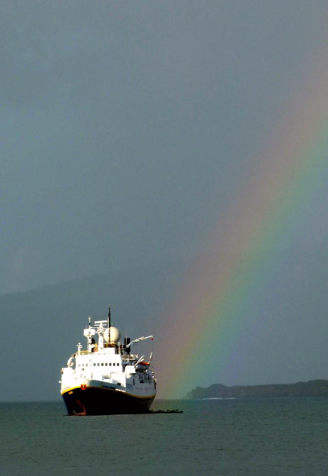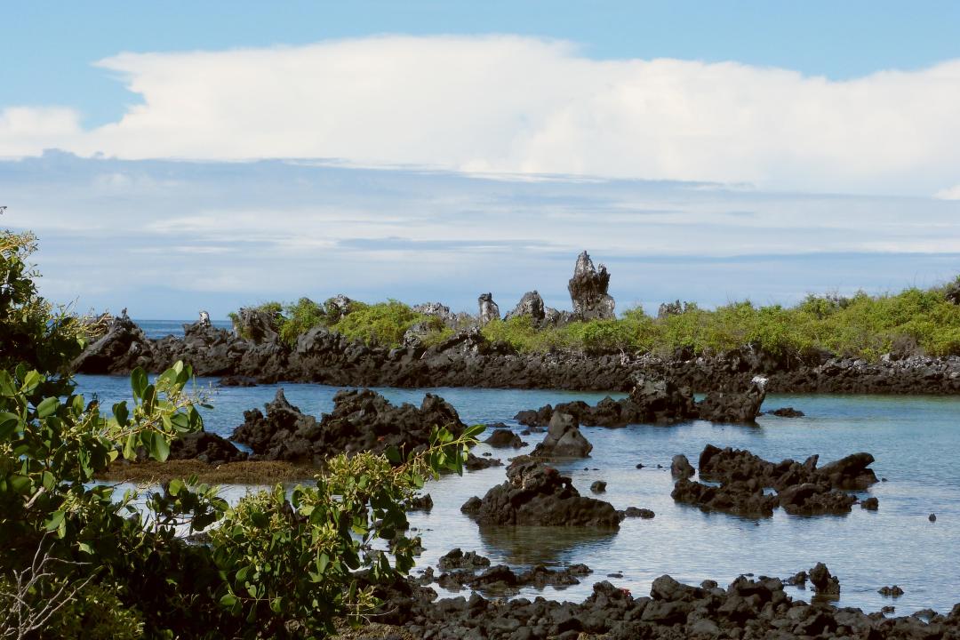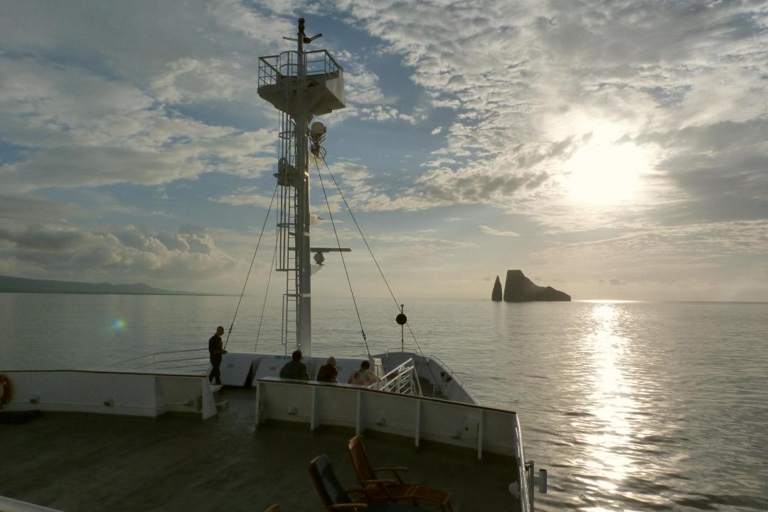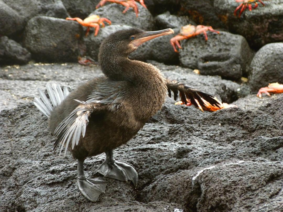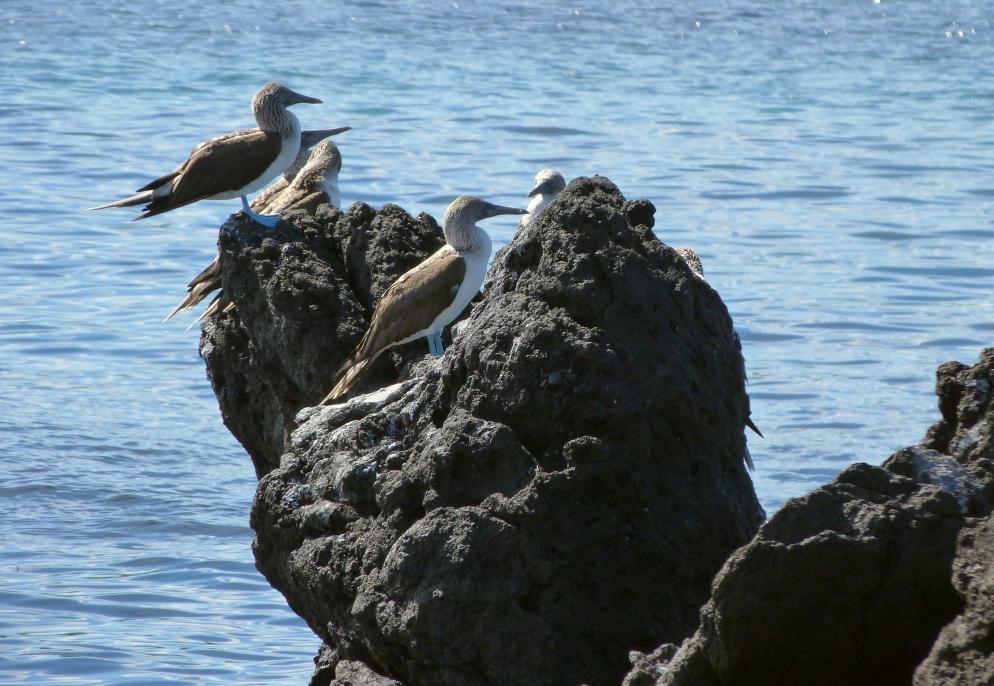 Mon. 13 Feb. 2012: Hike at Punta Espinoza on Fernandina Island (fresh lava flows, numerous marine iguanas, cormorants). Afternoon, zodiac cruise at Punta Vicenta Roca, Isabela Island (rays, penguins, heron, sea turtles, boobies, cormorants, beautiful cave). Sunset: equator crossing celebration.