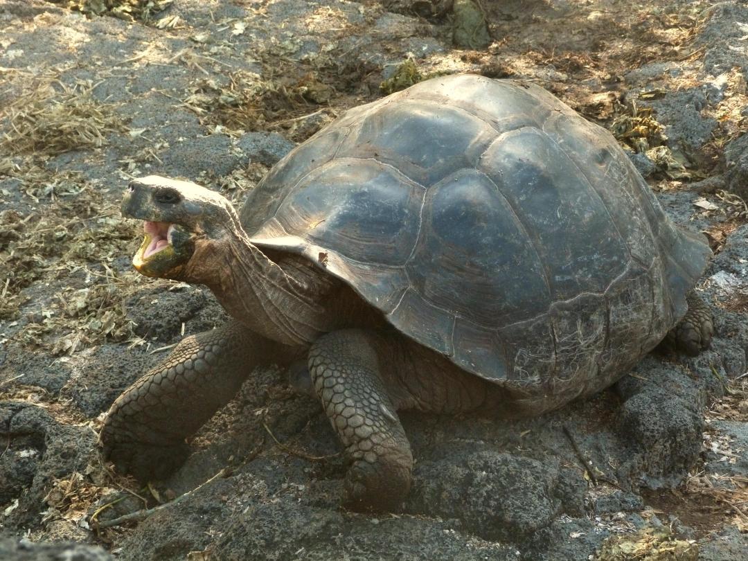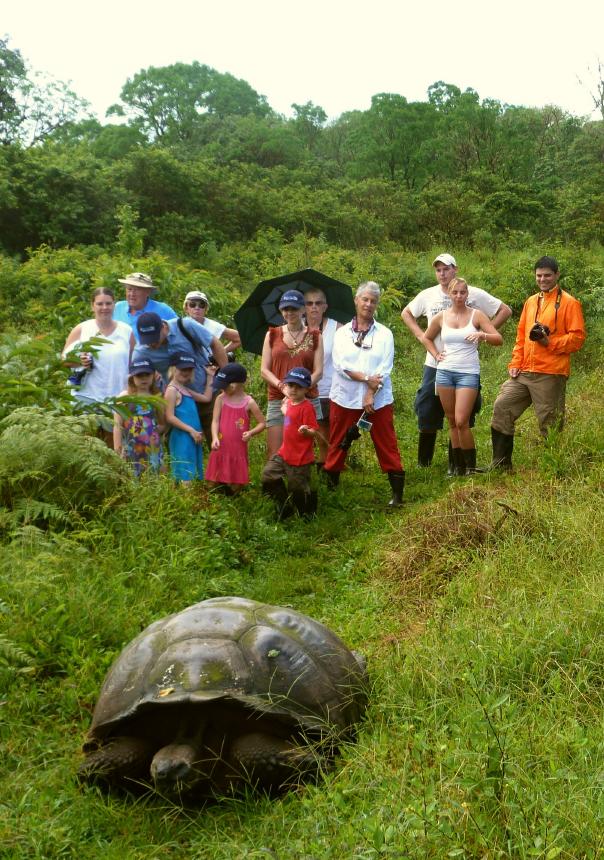 Thurs. 16 Feb. 2012: Santa Cruz Island. Charles Darwin Research Station (tortoises of all sizes and ages, including Lonesome George the last of his species). Visit to coffee/sugar cane mill, then lunch at "Altair". Afternoon: rainy walk to see tortoises at highland ranch. Evening: Music and dance performed by Ecuadorians from town.