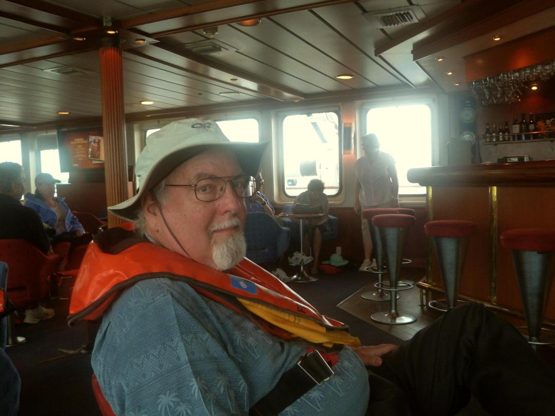 Clark sitting at the barend of the lounge, awaiting final disembarkation