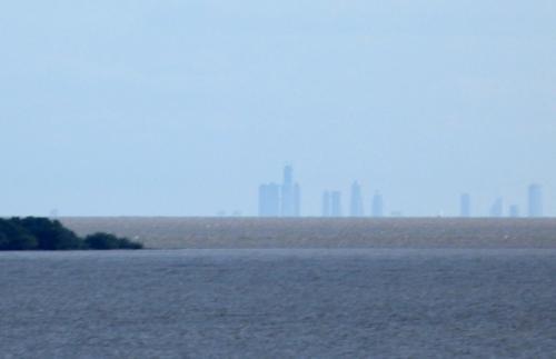 Buenos Aires skyscrapers viewed across Rio de la Plata, 45 km from Colonia del Sacremento, Uruguay.