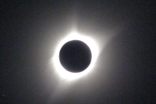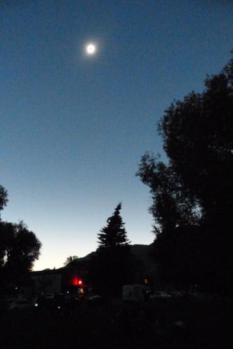 Y with eclipse glasses, as Sun becomes a crescent, Miller Park, Jackson, WY.